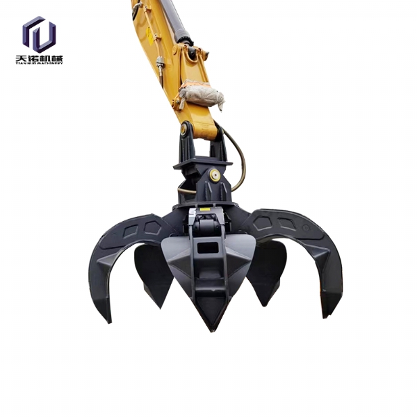五瓣抓:五瓣抓全身采用特殊錳鋼板制作,高彈性;采用內置型安全閥,防止油缸自然掉臂;大容量的油缸設計,增大設備的抓取力量;可調節性的360度旋轉,能滿足特殊工況的需要;采用了旋轉齒輪的方式,更加提高了產品的耐久性;關鍵零部件采用進口,在重物和惡劣的工作環境下發揮更佳效果、效率更高!