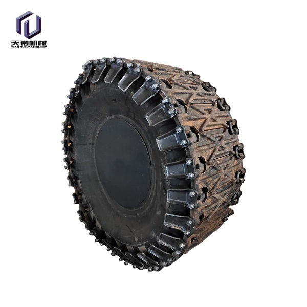 輪胎保護履帶是采用國內外先進生產工藝,利用優 質 合金鋼材料,經精 密鑄造,高強度全自動閃光對焊,編結構合理,利用特殊焊接工藝焊接而成的一種輪胎設備。保護履帶耐磨性好,抗疲勞性強,根據使用條件壽命達3000-8000小時。拆裝方便,省時省力,產品規格齊全,可與進口裝載機所匹配,輪胎保護履帶,采用高科技耐磨材料制成其結構新穎緊湊,性能穩定,主要適用于礦山作業的裝載機、鏟車;其輪胎磨損快,使用壽命短,輪胎價格昂貴,使用成本高,將本產品嚴密的包裹在裝載機的輪胎上,可以有效的保護裝載機的輪胎,不被尖銳的石塊劃傷刺破,延長了輪胎的使用壽命,使用一條輪胎保護履帶,能節省十條輪胎以上的費用還能提高裝載機的工作效率和安全是礦山作業的具備品。
